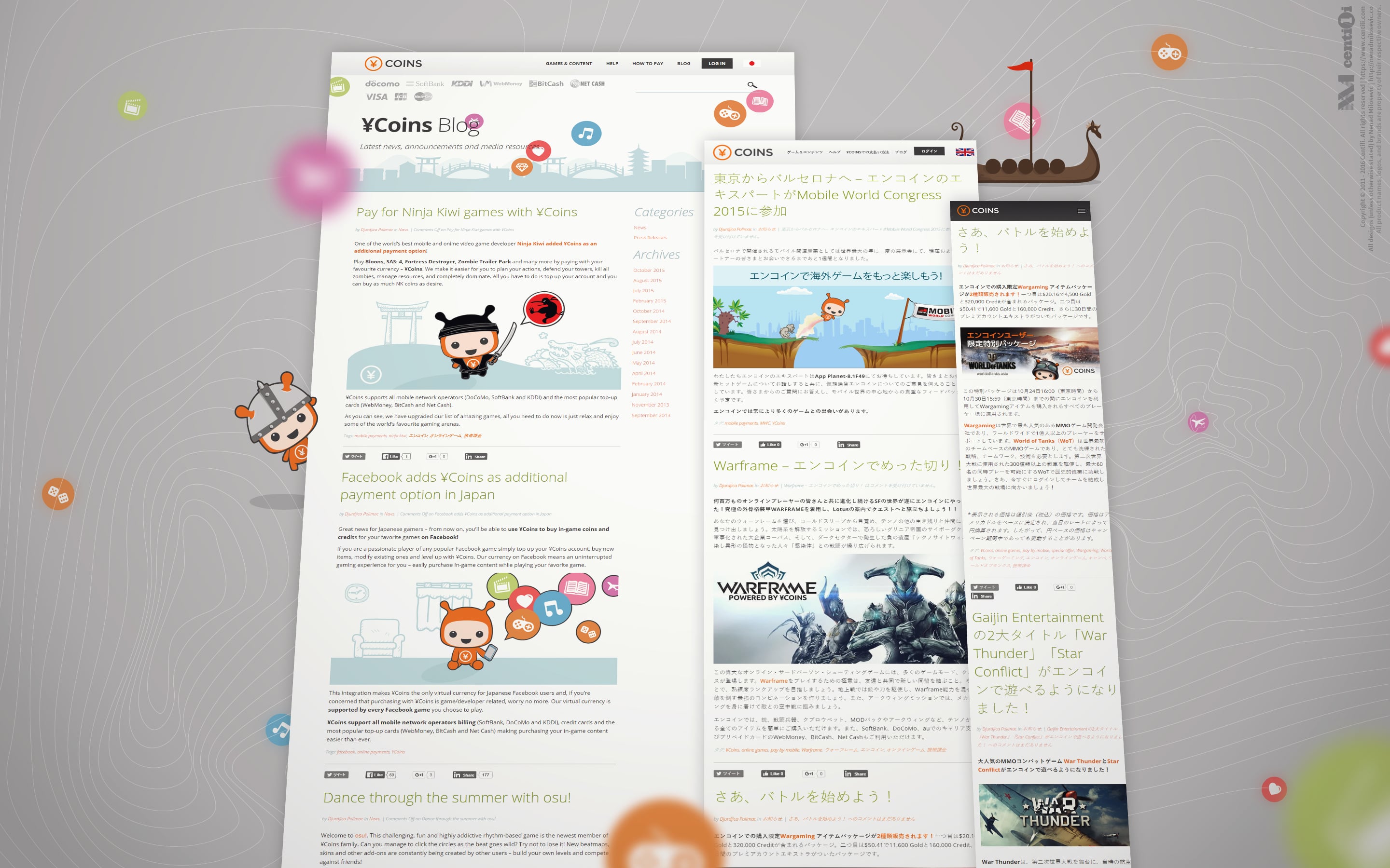 I took our design guidelines into account while designing and coding the ‎¥‎Coins blog. It was built on a WordPress using a Bootstrap as a foundation for the HTML and CSS. I tweaked a multilingual WP plugin, for my custom-built theme, to enable the support for other languages. I also suggested that we need web servers closer to our users, so we installed a blog on the server physically located in Japan to lower the latency. Even though we were planning to implement a CDN, we haven’t managed to do it while I was a product designer at Centili.
